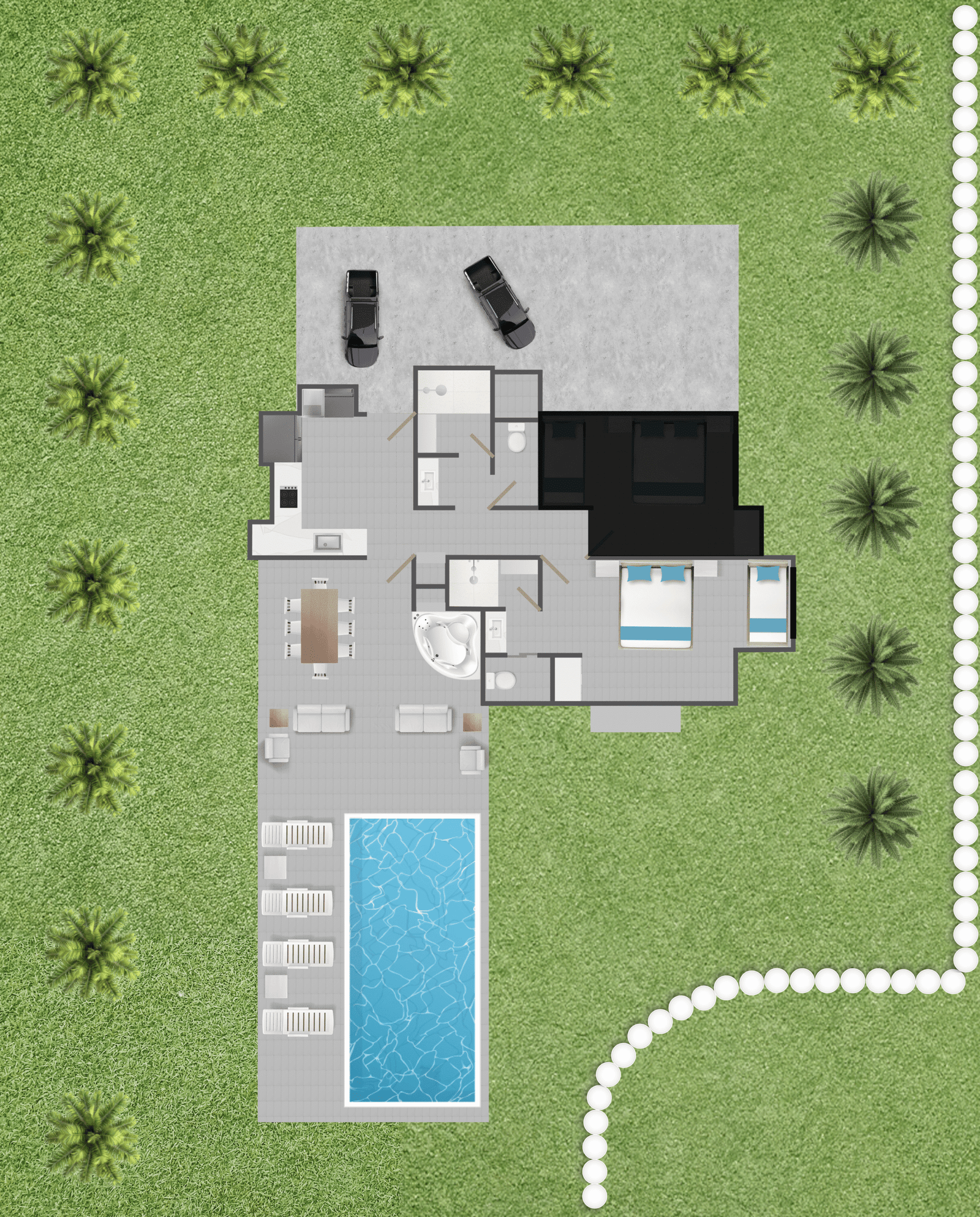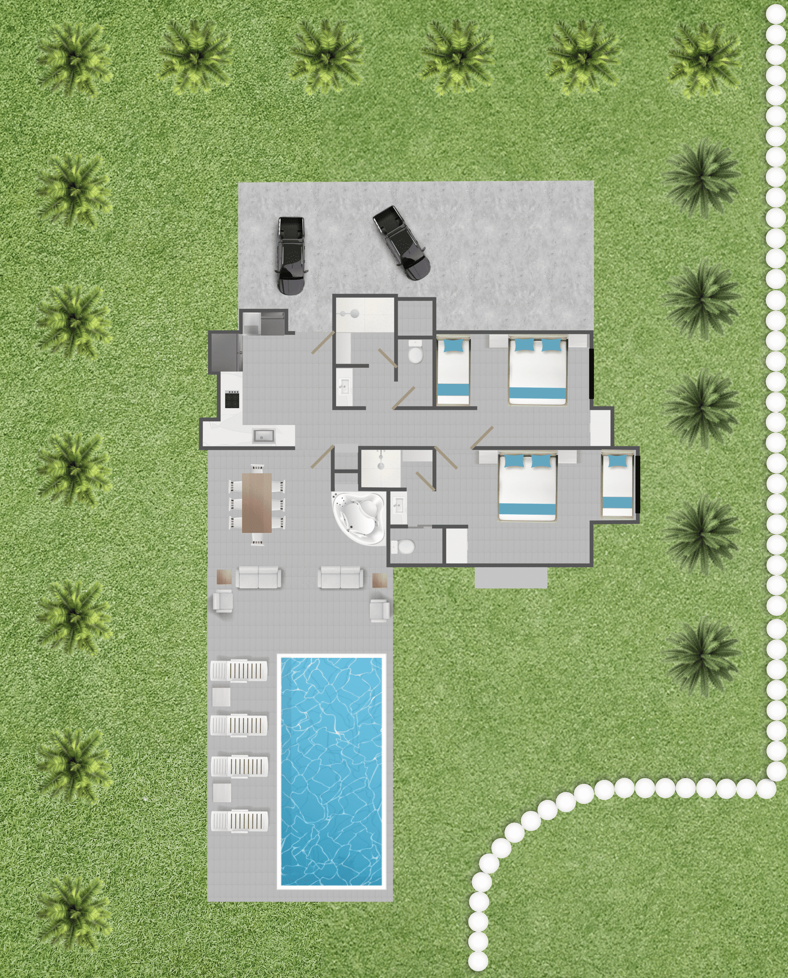 - Las suites y habitaciones anexas se habilitan según la cantidad de personas.